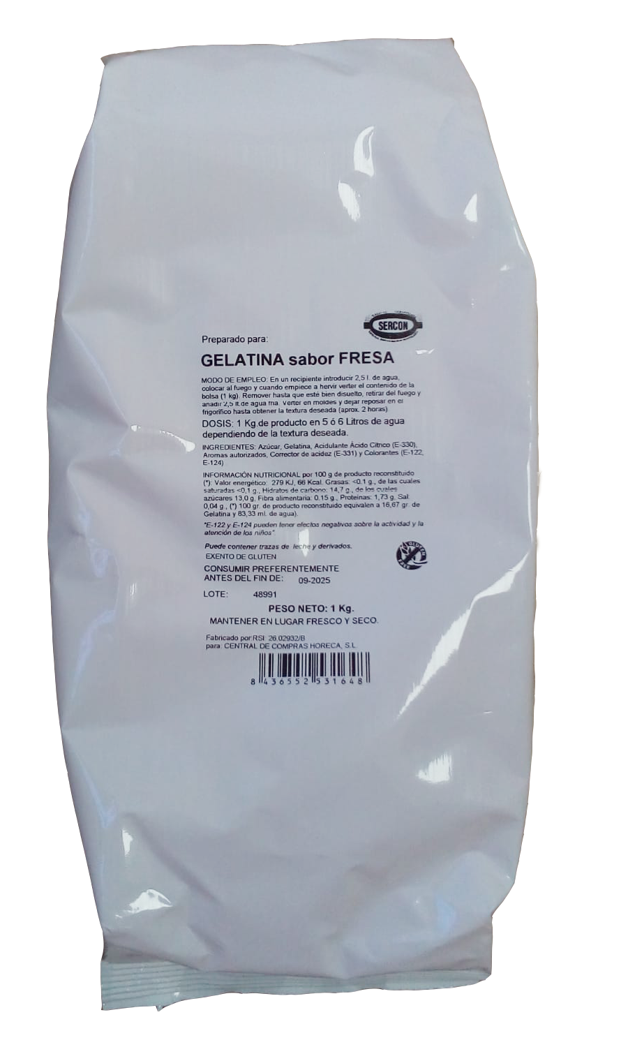GELATINA FRESA, NARANJA, LIMÓN O PIÑA SERCON 1 KG
