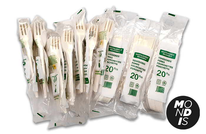 TENEDOR PLASTICO REUTILIZABLE CREMA MONDIS 20 UD